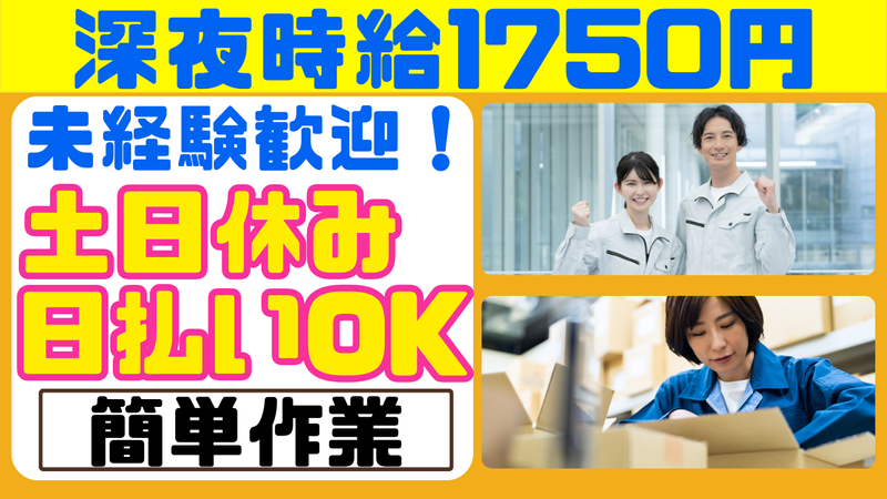 職種/仕事内容 | 仕事内容 【稼げる夜間有/高時給1750円*】 ★福利厚生待遇面で選ぶならココ★ 土日休み × 日払い・週払いOK // シンプル軽作業中心! 未経験スタート活躍中! 当社スタッフも多数活躍中の人気案件☆ \\ ▮部品の品出し・ピッキング作業!  ̄ V  ̄ ̄ ̄ ̄ ̄ ̄ ̄ ̄ ̄ ̄ ̄ ̄ ̄ ̄ 自動車やトラック製造に使用する 部品やネジを取り扱う作業です! ・梱包 ・ピッキング ・品出し など コツコツ・モクモク簡単軽作業です♪ \未経験でも安心スタート♬/ ╭━━━━━━━━━━━━╮ こんな方にもオススメ! ╰━v━━━━━━━━━━╯ ✓未経験でも出来る仕事を探している ✓安定した所で働きたい! ✓初めての派遣業界 ✓日払い・週払いで即収入が欲しい ✓安定収入をGETしたい方 ✓仕事とプライベートを両立したい方 などなど *** ▼求人のお勧めpoint ――― ✅日払い・週払いOK ※規定あり ✅住宅手当・家族手当あり ✅土日休み ✅定着率バツグンのお仕事 ✅丁寧な研修あり ✅各種手当やスキルアップ制度充実 ✅しっかり休める! たくさんのスタッフが勤務しているので、 わからないことはすぐ解決出来ます♬ 工場の就業経験なしでスタートした方も 多数活躍中なので、 安心して始められるお仕事です。 各種保険、交通費、有給休暇、特別休暇、 各種手当など待遇面でもしっかり サポートしていきます◎ 安定して働きたい方にお勧め!! *** < 他案件でも勤務地多数あり > ◎ワークライフバランス安定! ◎昼間の仕事で安定したい! あなたの希望にピッタリな働き方が叶う★ ▼当社HPにてカンタンWEB登録可能▼ http://www.senage.co.jp/ 【案件No1644-002】 |