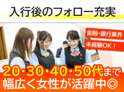 対象となる方 | 求めている人材 ◆未経験者でも意欲のある方大歓迎! ◆女性活躍中 ◆ブランクありOK! 【必須条件】 ・高卒以上 ・基本的なPC操作できる方 (データ入力作業など) 【歓迎条件】 金融機関の勤務経験ある方 ※必須ではありません ーこんな方が働いてますー 20代・30代・40代・50代の 幅広い年代の方が入行し、多数活躍しています♪ |