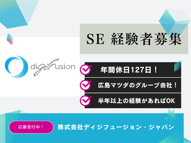 勤務地 | 株式会社ディジフュージョン・ジャパン 730-0016広島県広島市中区幟町13-4 広島マツダビル12階 |