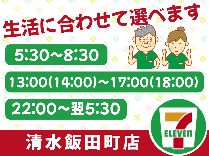 職種/仕事内容 | 仕事内容 ⭐夜勤急募!時給1375円~⭐ 副業中の方・フリーターさん活躍中‼ 20代~60代・主婦・シニア…幅広く在籍! アナタのライフスタイルに合わせて勤務OK ******************************** 【おシゴト内容】 レジ、商品陳列、接客、店内清掃などを お任せします♪ コンビニバイトは初めて…そんな方も安心! 自動レジだから、バーコードをピッと するだけでOK◎ 難しい操作や金銭のやり取りは ありません! 夜勤はお客様も少ないため あわただしくなることはほぼなく、 未経験の方もチャレンジしやすいですよ◎ ・・・・・・・・・・・・・・・・・・・・・・・・・・・・・・・・・・・・・・ 【こんな方が活躍しています】 20代➡日中は本業の事務、週2土日メインで 夜間にムリなく楽しくWワークしています♪ 40代➡家事を全て終えてから 気持ちよくお仕事スタート!お子さまに 「おかえり」を言える働き方が可能です。 60代➡定年後に再スタート!昔のレジ・ 接客・販売経験を活かしてスムーズに 始められました♪家事と両立しています! 「他の仕事と掛け持ちで夜勤を」 「家事の合間に扶養枠内で」 「子どもが大きくなったから仕事復帰」 など、生活に合わせて勤務可能★ 勤務時間の相談もOKですよ! ・・・・・・・・・・・・・・・・・・・・・・・・・・・・・・・・・・・・・・ コンビニのおシゴトはシンプルそうで、 なかなか奥が深いんです◎ 陳列しながらレジは混んでないかな? 困っているお客様はいないかな? と気配りしたり… 新商品をイチ早くチェック✅できるのも コンビニバイトの魅力✨なんです! もちろん、まずはカンタンなことから はじめて、ちょっとずつ ステップアップしてください♪ ========================= 電話応募も受付中♬【TEL】054-367-7227 ========================= |