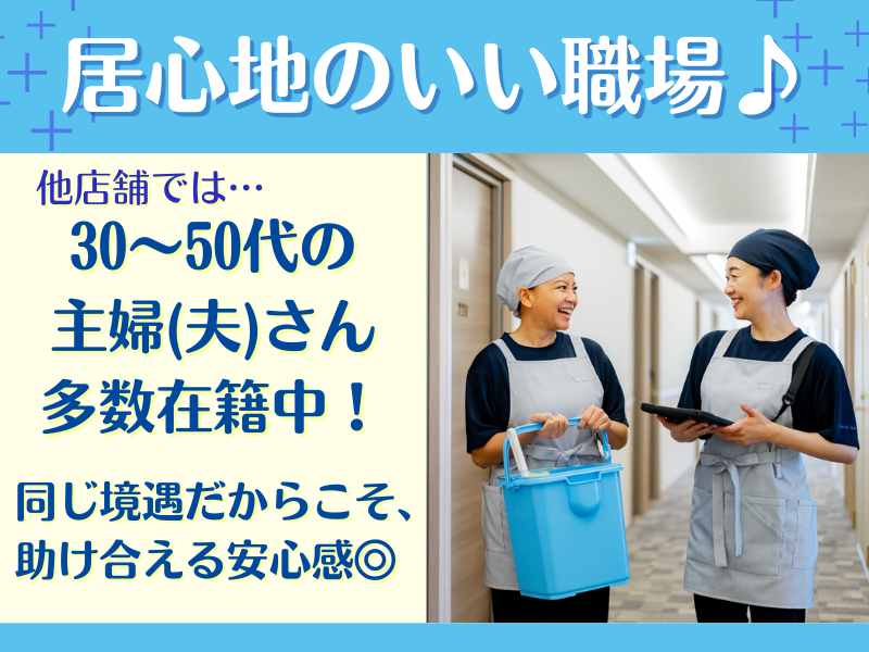 職場環境・雰囲気 | 職場環境 2026年2月7日新規OPEN! そのため、スタッフ全員スタートラインは同じ! 既存店舗では幅広い年齢の方が活躍中! オープンまでは既存店舗で勤務。 先輩スタッフから丁寧な指導があるので、ご安心を! お客様対応はなし!清掃作業に集中できる環境です! 喫煙所:喫煙所あり(屋外) |
